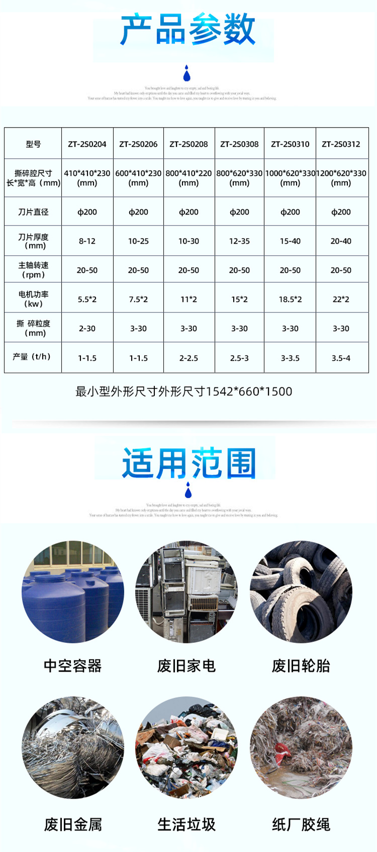 雙軸撕碎機(jī)-廣泛應(yīng)用于塑料制品、廢舊塑料、木材、廢舊輪胎、廢舊金屬、廢舊家電等相關(guān)固廢利用領(lǐng)域。整機(jī)模塊化設(shè)計(jì),根據(jù)不同物料特性及產(chǎn)能需求,配置相應(yīng)的齒形結(jié)構(gòu)、刀體排布、刀具材質(zhì)及箱體尺寸。雙軸破碎機(jī)主要靠“剪和切"的原理來完成破碎固體廢棄物的過程。