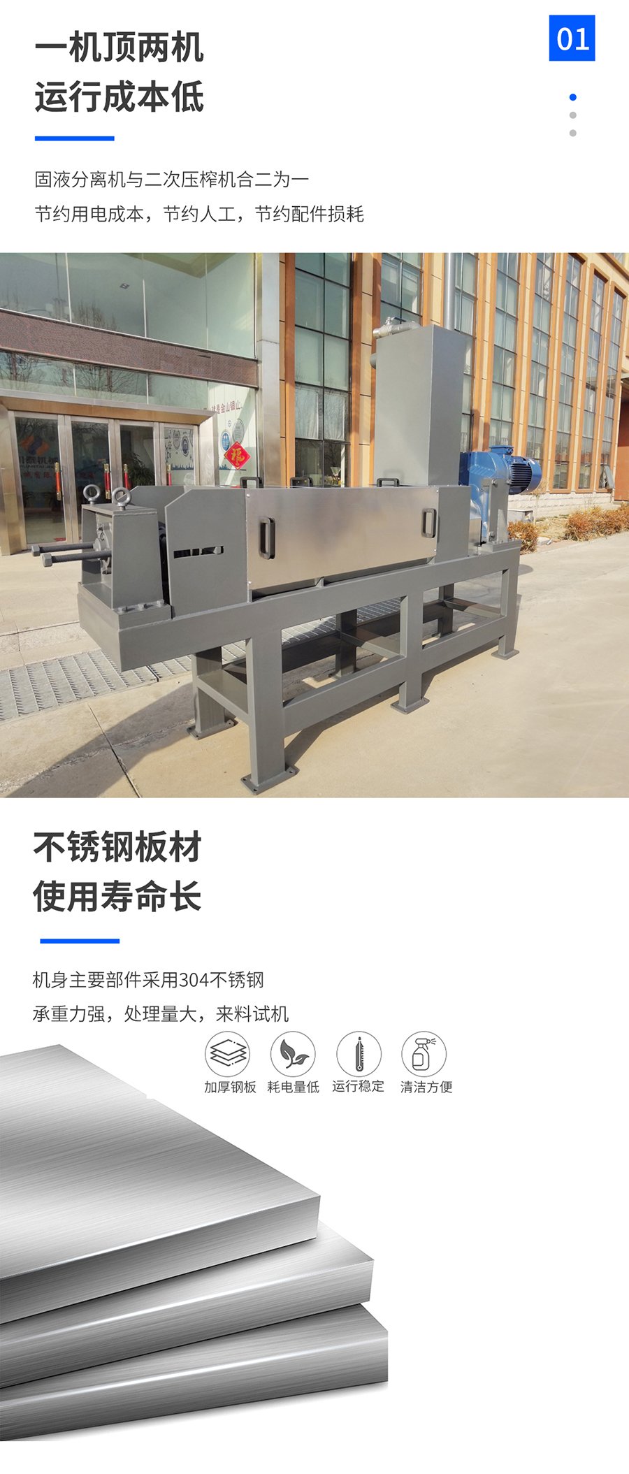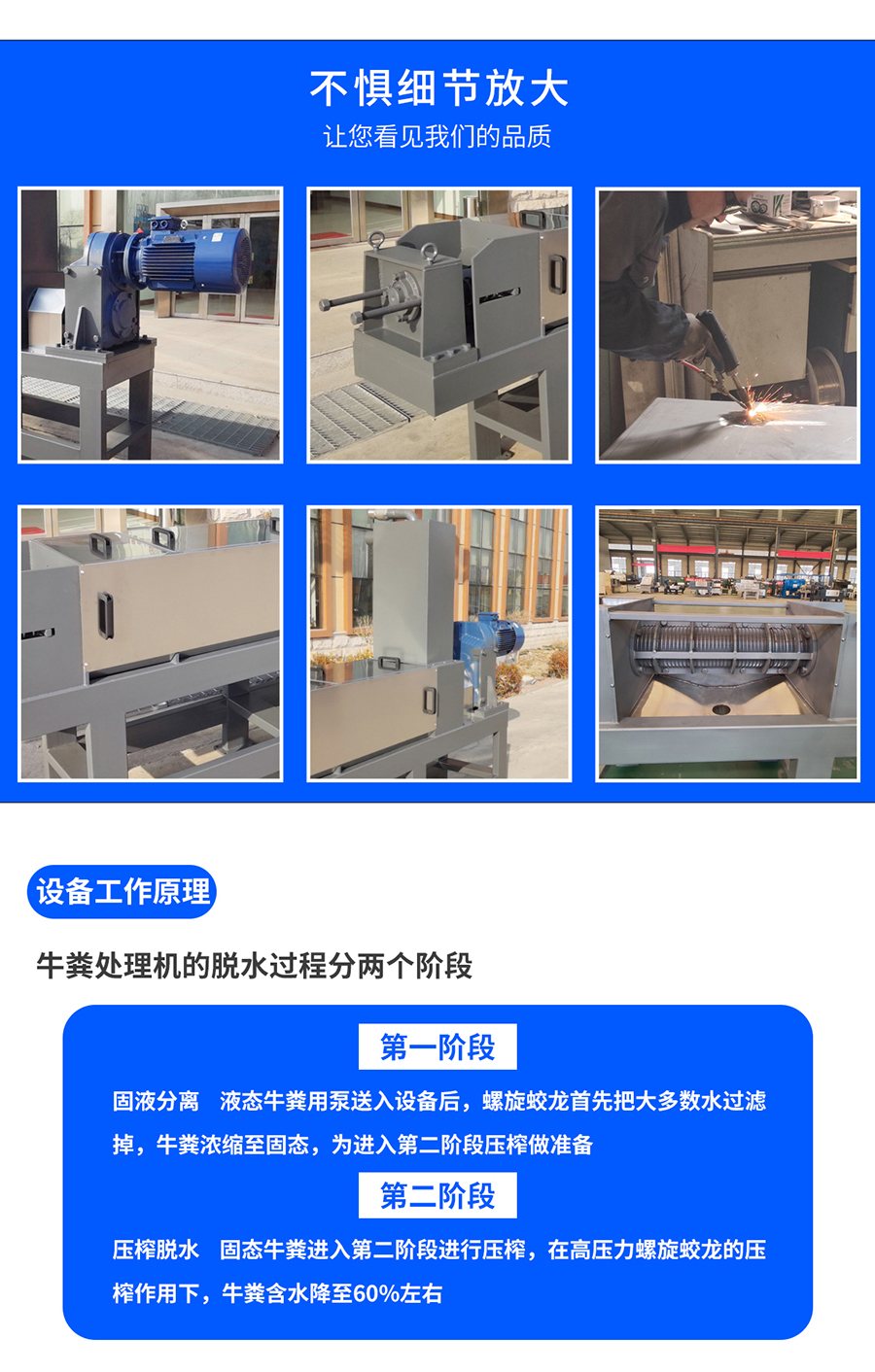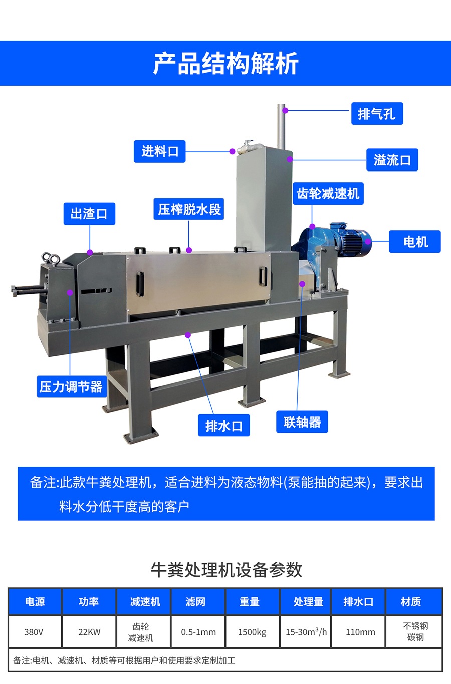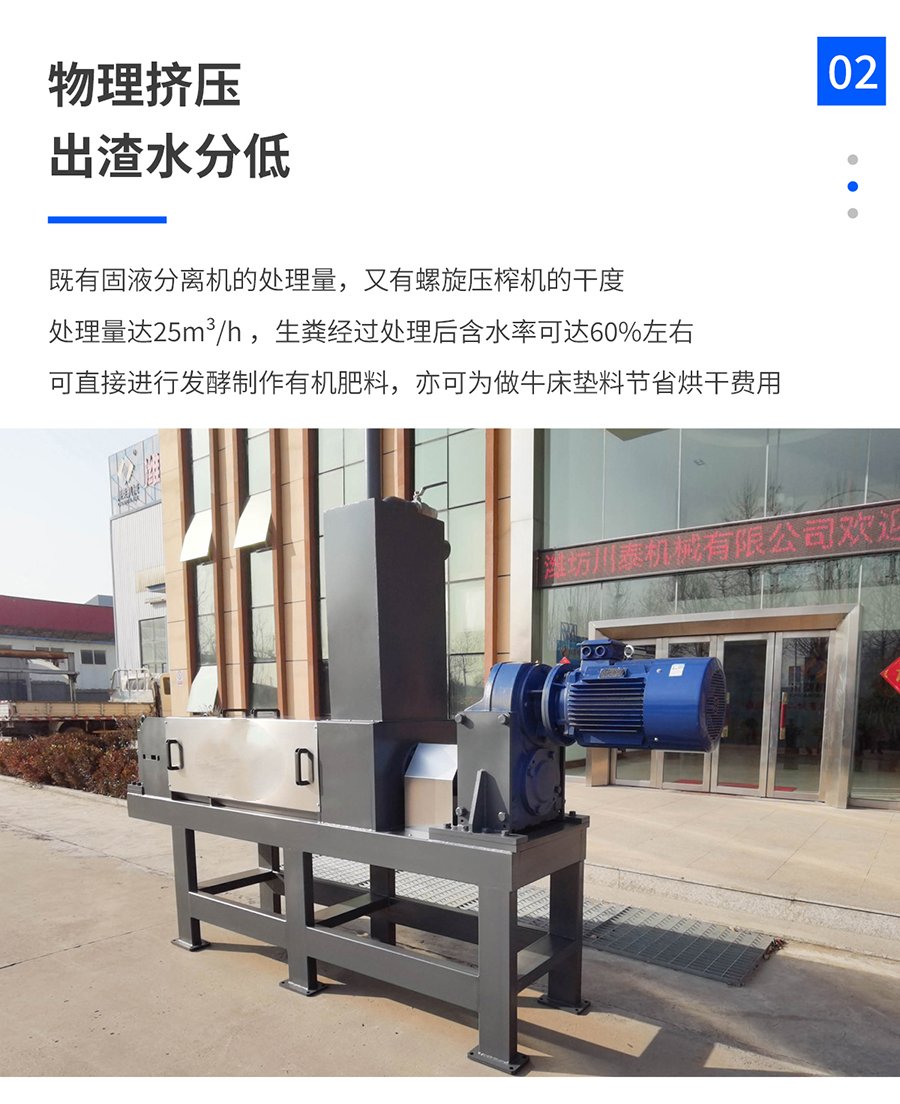 ?固液分離?:經(jīng)過預(yù)處理的牛糞進入處理機主體后,會經(jīng)歷固液分離的過程。這一過程可能基于機械擠壓、旋轉(zhuǎn)篩網(wǎng)等多種原理,旨在將牛糞中的固體和液體成分有效分離。